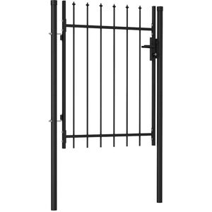 This garden gate will form a contemporarily styled, practical barrier, which will separate your garden from the outside world. Highly stable and durable, the fence gate provides a practical garden barrier for your garden, patio or terrace. With vertical bars topped with spike ends and strong horizontal brace as the reinforcement, our garden gate will provide a high degree of privacy and security, while forming a fabulous entryway to your property. Manufactured from heavy-duty steel, the gate is powder-coated to protect against rust and corrosion. It also comes with a bolt hinge for quick locking, and mounting posts for easy installation. 3 matching keys are also included in the delivery. This gate is a great combination of style, strength, stability and corrosion resistance! Colour: Black Material: Powder-coated steel Overall size: 100 x 225 cm (W x H) Gate panel height: 175 cm Post diameter: 40 mm With spike top 3 keys are included SKU: 145745 EU responsible party Haba Trading B.V.