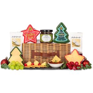 Celebrate Christmas with our elegant Festive Artisan Cheese and Wine Basket, the perfect gift for those who appreciate the finer things. This festive hamper features traditional West Country waxed cheeses, paired with a fine Chilean wine from the Central Valley. Complete with chutney and oatcakes, it's an ideal platform for a cosy Christmas cheese board. Presented in a luxurious Haute basket, this delectable surprise adds a touch of festive indulgence to any holiday celebration. Included: Tierra Del Rey Merlot 75cl Chilean Tierra Del Rey Sauvignon Blanc 75cl Chilean Walkers Oatcakes 280g Mouse House Black Pepper Cheese 100g Mouse House Italian Italian Pizza Cheese 100g Mouse House Mature Cheddar 100g Valley Preserves Sweet Apple Chutney 120g Black Hand Woven Wicker Basket (37cm x 28cm x 16cm)