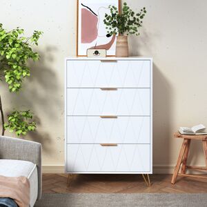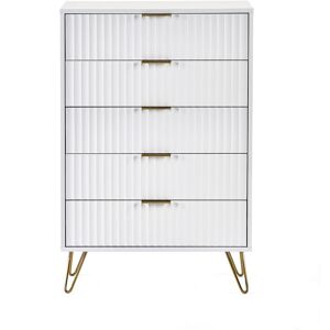 Add a soft touch of elegant texture into the bedroom and beyond, thanks to this dresser. The soft white colour comes with ridged drawer fronts, with gold coloured handles and hairpin legs - this is a beautiful design! With three drawers there's plenty of storage for clothing and more. Made from a particle board and MDF blend for durability, these white drawers come with anti-tipping straps for safety.- Three drawers: room for plenty of clothing; - Elegant drawer unit: white colour, with ridged front for texture and gold coloured accents; - Sturdy and durable particle board and MDF blend; - Anti-tipping straps included to safely attach to a wall; - Foot pads protect the floor from scratches; - Maximum load 30kg, assembly required;- Colour: White; - Materials: MDF, Particle Board; - Overall Dimensions: 50W x 40D x 63Hcm; - Drawer Inner Dimensions: 41.1W x 28.5D x 8.1Hcm; - Weight Capacity: 30kg (Total), 15kg (Tabletop), 5kg (Drawer); - Item Label: 839-674V80WT; Fairmont Park