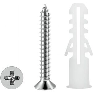 Material: The wall expansion anchor is made of high quality and very flexible plastic, which is not easy to break. The self-tapping screws are made of high-strength stainless steel, which is resistant to oxidation and corrosion and can be used for a long time. Practical Design: The slot of the ribbed wall anchors adopts an expansion curve design, which expands on two opposite sides when you tighten the screw, which greatly increases the anchoring force and prevents the wall anchor from rotating in the hole. Easy to Use: Just drill a hole in the wall, then insert the wall anchor, and then tighten the screw clockwise to complete the installation. Widely Applicable: Our wall anchors and screw set are suitable for installing or hanging various items, such as frames, bathroom or kitchen accessories, shelves, lamps, murals, mirrors. Package Includes: 100x Screws; 100x Expansion Tubes. Note: The data are all manually measured, please allow 1-3cm error due to different light and display,