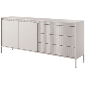 Transform your living space with the Black Boncho Sideboard Cabinet, a sleek and modern storage solution. This expansive 187cm unit boasts two hinged doors and three drawers, each with a push-to-open mechanism, offering ample storage for various room sizes. Constructed from high-quality 16mm laminated board with durable ABS edging and sophisticated MDF fronts, this cabinet combines strength with stylish design. Supported by robust black metal legs, it provides a sturdy base and a contemporary silhouette that enhances any modern decor. Latitude Run Colour: White