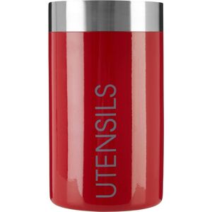 This cylindrical utensil holder features an open top which makes it easy to grab that spatula or whisk when its needed. Its made from tough enamel, with a colourful red finish with grey utensils graphic that will brighten up the kitchen worktop. A satin stainless steel trim complements the red, and wont wear when utensils are leaned against it.