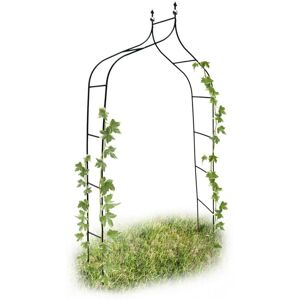 This arbour archway is the perfect support for climbing plants. Any climbing roses or vines will be happy growing against this trellis. What's more, this stunning arch will be an absolute eye-catcher in your garden. The garden arbour is made of powder-coated iron. It is very strong and weather-resistant. The filigree design and pointed tip also make it a chic deco piece for your garden or yard. Details on Rose Arbour with Pointed Tip • Size: approx 242 x 138 x 35.5 cm (95.3 x 54.3 x 14 in) • Size of entryway: approx 208 x 116 cm (82 x 45.7 in) • Weight: approx 10 kg (22 lbs) • Colour: black Weather-Resistant Trellis • Frame of powder-coated iron • Weather-resistant • Very sturdy and can withstand any weather conditions • Includes 4 pegs for maximum stability Decorated Arch for Climbing Roses and More • Perfect support for climbing flowers of all kinds • Ideal for climbing roses, ivy, etc. • Will be an eye-catching piece in your garden • Beautiful design with pointed tip Included in