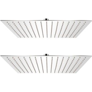 This shower head will make a great addition to any bathroom. It is equipped with a large number of nozzles, which scatter the water over a wide area for a truly relaxing rain shower experience. The silicone nozzles ensure that any limescale deposits are always easy to clean, and the swivel joint allows you to adjust the spray angle. Delivery includes 2 shower heads. Material: Stainless Steel Size: 40 x 30 cm (L x W) Shape: Rectangular Anti-limescale nozzles Number of nozzles: 192 Can be wall or ceiling mounted Delivery includes: 2 shower heads SKU: 275945 EU responsible party Haba Trading B.V. Mary Kingsleystraat 1 5928SK Venlo The Netherlands Compliance-safety@vidaxl.com
