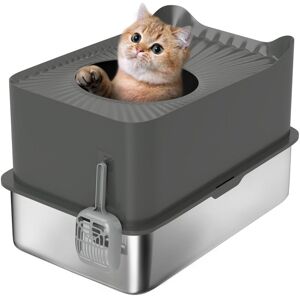 Presenting the PawHut hooded cat litter tray, revolutionising your pet's litter routine. Spacious and enclosed, it provides comfort and privacy to ensure pets feel at ease. Cats enter through the front and exit above, so they don't spread litter around your home, whilst the slide-out tray and scoop are for fuss-free maintenance. Sleek and compact, it blends seamlessly with your décor – it doesn't look out of place. A serene space for pets to use – no mess, no stress. Specifications: ● Colour: Grey ● Material: PP ● Overall dimensions: 38.5H x 52L x 41Wcm. Inside space: 36.5H x 50L x 38.5Wcm. Front door: Φ18cm. Top door: Φ19cm. Tray: 47L x 37W x 11.5Dcm. Scoop: 21.5L x 9.8W x 3Dcm ● Item label: D31-084V00GY Features: ● Spacious and stylish, keeping pets comfortable and compliments home décor ● Pull-out tray and scoop for effortless cleaning ● Convenient front entry and top exit for easy access ● The top has holes to contain mess inside the litter box ● A private space, making pets feel