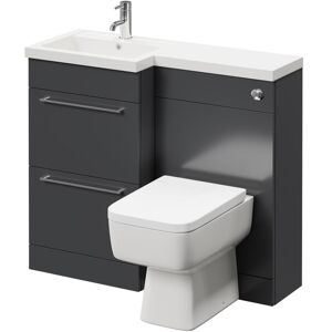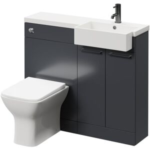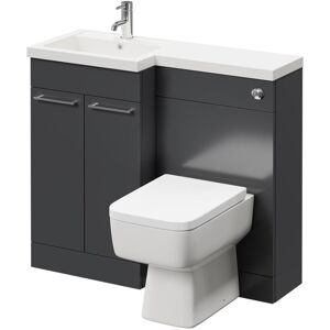 Model Number: WDB93478 The Napoli Combination Gloss Grey 1000mm Vanity Unit Toilet Suite with Left Hand L Shaped 1 Tap Hole Basin and 2 Doors with Matt Black Handles combines a WC unit together with a basin vanity unit to create a seamless solid one-piece surface basin and worktop for a luxe finish. The stunning gloss finish of this toilet unit is guaranteed to bring a very fine and sophisticated shine to your newly designed bathroom space. This combination unit provides an excellent amount of useful storage space that will keep your bathroom essentials out of sight and the cabinet doors feature a soft-closing mechanism for a smooth, quiet closure to avoid unnecessary wear and tear. Key features High quality ceramic toilet Soft closing toilet seat Soft close cupboard doors with internal shelf Basin comes with one pre-drilled tap hole Right hand version available Comprising of: Gloss Grey Floor Standing 2 Door Vanity Unit with Matt Black Handles W:490mm x D:378mm x H:830mm Left Hand L