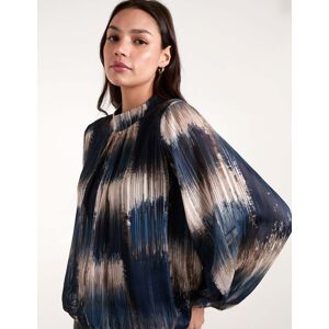 A sparkly blouse to wear now and love each and every party season! Teamed with PU trousers, court heels and a red lip. Outside: 100% Polyester Inside: 95% Viscose 5% Elastane Made in Italy Machine washableHigh neck Elasticated hem Long cuff sleeveButton backModel wears a size: S Model height: 5ft 7 / 170cm