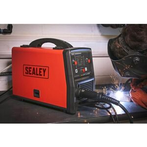 Sealey: Inverter Welder Mig, TIG & MMA 200amp with LCD Screen Manufactured with a pressed steel outer casing, lighter than traditional models at 20kg. Fully functional LCD front panel with easy to follow assisted set up. First, select type of welding, you will be advised the gas mixture and polarity recommended. Input electrode or wire thickness, completing the set up with the material thickness, you are then ready to start welding. Up to four set ups can be saved on the machine for fast loading. Inverter technology offers many advantages over traditional transformer type welders, giving greater duty cycles and more power factor efficiency. 3-in-1 Welder uses state-of-the-art technology to achieve MIG/TIG/MMA (Arc). Suitable for arc welding a variety of rods including rutile, basic and stainless. Fan cooled DC power supply for MIG and TIG, suitable to weld steel, stainless steel, copper, nickel, titanium and their alloys. Switchable between MIG, TIG* or MMA* welding modes (*optional