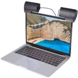USB cable for power supply, plug and play. Clip-on allows you to attach to a laptop, notebook or PC, and easy to remove Dual stereo speakers can achieve a balanced, pure and stereo sound effect, and join together to place on a desktop. Built-in volume control, convenient to adjust the volume. Material: PC + metal Lightweight and portable, take it anywhere you want. Dual stereo speakers can achieve a balanced, pure and stereo sound effect, which allows you to immerse yourself in the rich sound of music. movies and games. Speaker System: 2.0 Speaker Total Power: 6W Compatible System: Window XP, Vista, Win 7/8, and OSX Color: Black Maximum Clip Width: 2.1cm Package Contents: 2 x Dual Stereo Speakers Only the above package content, other products are not included. Note: Light reflection and different displays may cause the color of the item in a little different from the real thing. The measurement allowed error is +/- 1-3 cm.