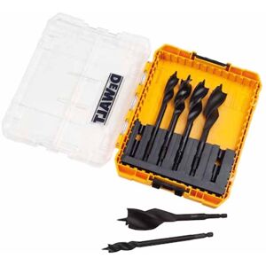 The Dewalt Tri-Flute 6x drill bits are ideal for drilling wood and offer 6x faster drilling penetration than a standard flat bit. Their 'Tri-Flute' design allows for faster chip ejection and their full screw tips ensure ease of use and pull through. DeWalt's Extreme series have the been designed on the Irwin Blue Groove bits with the added benefit of being impact rated with 1/4"" hex shanks, making them suitable for use in impact drivers as well as all standard drills with a jawed chuck. The cutting spurs produce clean holes with minimal break out and the tapered flute reduces binding. The drill bits are also heat treated for extra durability. These stubby drill bits are 10cm (4in) long, making them ideal for drilling through joists or in enclosed areas. Suitable for holes up to 5cm (2in) deep. This 6 Piece Stubby Dewalt Wood Bit Set ideal for drilling wood and offer 6 times faster drilling penetration than a standard flat bit. Their 'Tri-Flute' design allows for faster chip ejection