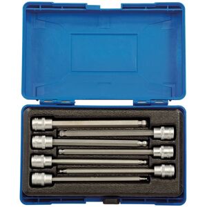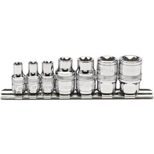Expert Quality, Draper TX-STAR® 8mm bits manufactured from silicon steel hardened and tempered with shot blast finish. 3/8" Sq. Dr. bit holder made from chrome vanadium steel hardened, tempered and chrome plated for corrosion protection. Contents 1 x Bit holder: 8mm x 3/8" sq. drive 6 x Draper TX-STAR® bits: T20, T25, T30, T40, T45, T50
