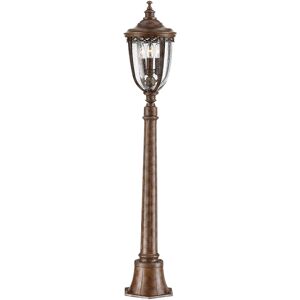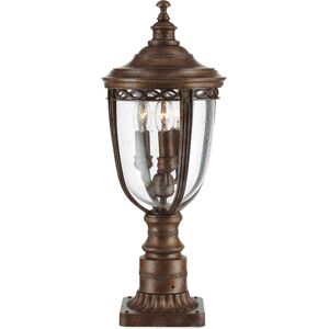 This Elstead English Bridle 3 light medium pedestal light is finished in British bronze and comes complete with clear seeded glass.ᅠ The English Countryside charm has been successfully paired with the grandeur of the Manor house.ᅠᅠ This light would look stunning in any outside environment and can be paired with a number of other lights for the added wow factor. Product code: FE-EB3-M-BRB FEATURES: * Finished in British bronze * IP44 rated * 3 year guarantee SIZE: * Height - 552mm * Width - 216mm BULBS: * Takes 3x 60 watt E14 Small Edison Screw Candle Bulbs—Not included * Also suitable for use with LED bulbs.