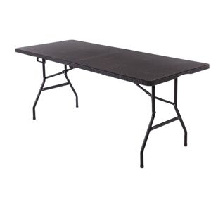 6ft Folding Rattan Trestle Table Heavy Duty Catering Garden Party 1.8m The folding trestle table is ideal for a variety of leisure applications such as camping, caravanning, picnics, parties, BBQs and other outdoor activities; or just when you just need some extra table space in the garden! The folding legs make it easy to store this table when not in use, and they're finished in a protective coating. The table top is made out of a high density rattan-effect moulded plastic that is designed to give you a long lasting finish whilst at the same time being very easy to keep clean - so it will last many winters and summers making this table great value for money! It's light weight also makes it extremely portable and it includes a built in carry handle - ideal for trips away! Specification: Dimensions: 180 x 74 x 74cm High Quality Rattan-Effect Plastic Table Top With Powder Coated Steel Legs Foldable For Easy Storage Carry Handle For Easy Transportation