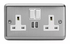 Varilight classic 2 gang single pole 13 amps switched socket and USB charging ports with curved edge faceplate. The USB port detects the device to be charged and optimises its output accordingly to achieve the fastest possible charging speed. Varilight XS5U2SW 13A Socket 2-Gang With USB White