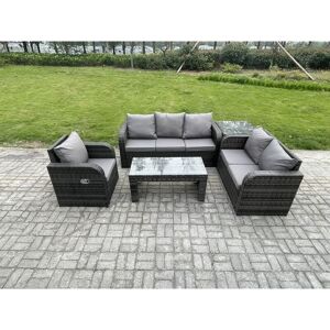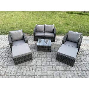 This 6 seater deluxe Garden furniture set adds decoration to your courtyard, deck, backyard, porch, and even swimming pool, using high quality PE rattan and durable galvanized steel construction, which can withstand the bad weather in the UK and can be easily combined into different configurations according to your needs at any time. Set Dimensions: 2 x Big footstool 65L x 65W x 34H cm; 2 x Reclining Chairs: 74L x 67W x 79H cm; 1 x Love Sofa Size: 124W x 67D x 79H cm; 1 x Square Coffee Table 65L x 65W x 34H cm; Dark grey mixed rattan with dark grey fabric .Color may some difference due to light or monitor .we are unable to return the item due to color problem . The armchair are adjustable, you can adjust the inclination of the chair back from 90-130 through the button .the product is delivered on pallet, to kerbside only. Fimous 6 Seater High Back Rattan Garden Furniture Set with Square Coffee Table 2 Big Footstool Reclining Chair Indoor Outdoor Patio Lounge Sofa Set