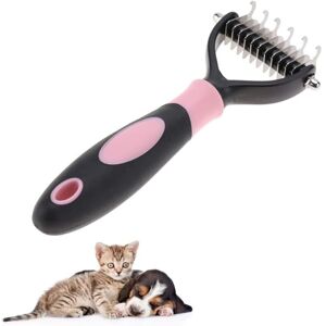 Great Pet Grooming and Massage Tools: This pet knot comb is a perfect tool for fur grooming and daily massage. It is suitable for pet fur grooming and daily massage, makes your pet's fur shinier Superior Performance: The stainless steel pet hair removal comb is strong and durable, which can stay sharp to last for years. The comb can easily and quickly tackle unmanageable mats and tough tangles Ergonomic Handle: The non-slip and ergonomic handle keeps your hand comfortable to grip and allows for quick combing effortlessly, then the soft non-slip handle makes regular combing relaxed Safe and Gentle: Scratch-free and safe for your pet, the round teeth allow for gentle and precise hair removal for dogs with sensitive skin. The curved blade design, unlike other sharp tools, will scratch the skin ;Effective: Our pet dematting comb has a double-sided head, which allows you to remove loose hair, the toughest knots, mats, and tangles with less effort. The sturdy blades remove undercoat and