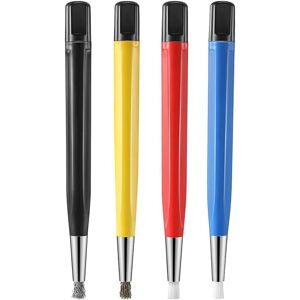 4 Piece Brushes - Fiberglass scratch brush pen, brass bristles scratch pen, steel bristles tool and nylon tip tool Pen Style Brushes - The pen-style scratch brush features premium material that cleans tight areas with detail. It is excellent for pre-solder and contact cleaning. Sanding Pen - Metal ferrules for improved durability. Fiberglass tip to fix paint scratches and battery terminals. The perfect rust remover for cars. Multi Functional - Great for circuit board cleaning, automotive rust remover, watch polishing, removing dirt and rust, car chip and scratch remover, and more. Clean rings and other jewelry. Twist cap to change length and firmness of wire brush bristles. Material:composite material colour:As Shown Package Contents: 4 * Brushes Only the above package content, other products are not included. Note: Light and different displays may cause the color of the item in the picture a little different from the real thing. The measurement allowed error is +/- 1-3cm.