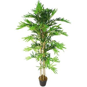 This realistic artificial bamboo tree stands 150cm (5ft) x 60cm x 60cm overall when arranged as shown in our photographs and has real natural bamboo canes. Our artificial bamboo trees are available in a range of sizes and colours. Highly realistic premium quality artificial plant. This bamboo comes potted in a plain black plastic pot (18cm (w) x 14cm (h) approx) and is ready to display but these do look all the more impressive if you stand them inside a larger decorative planter. Any decorative planters shown are for illustration only. This product is designed for indoor use only.