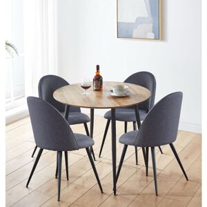 This stylish table with marble effect top and powder-coated legs is guaranteed to turn heads and catch the eye wherever it is placed in the home. The laminated board of the table is strong and sturdy and instantly appealing with its white finish; it is the perfect foil for the stylish black legs. The round table can be accommodated in rooms of any size with ease. What's more, the table is as versatile as it is stylish. There are many potential uses that the table could have in the home. It's up to you to decide how to get the most from this neat and appealing table. The table can be paired with the stylish matching Grey Fabric Chair to good effect. The chair shares the same black powder-coated legs as the table. Durable, hard-wearing and incredibly easy on the eye, this round table will blend with any décor in the home. This on-trend fabric chair with black legs is the epitome of contemporary style. The chair has a slim profile with an understated but exquisite curved design. Ideal as