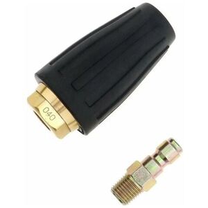 High Pressure Nozzle: This is a quick connect turbo nozzle. Compatible with all petrol and diesel pressure washers. Wide Compatibility: Universal to fit most gas pressure washers with quick connect spray wands, fits standard 1/4" sockets. High Performance & High Value: This turbo nozzle helps reduce cleaning time by using the rotating action of a 0° jet and a wide angle spray, giving you the power you need and the coverage you want. Strong Clean: It rotates at high speed to increase the intensity and the spray cleaning area. Wide range of use: Its powerful blow makes it ideal for cleaning large flat surfaces such as driveways, walks, patios, etc. Item specifications: Pressure flow: 040. Material: Aluminum alloy and plastic. Color: As the picture shows. Maximum load: Pressure: 207 bar 3000 psi. Working temperature: 60°C. Pressure resistance: up to 200 kg. Nozzle size: 85 x 40 mm. Connector to screw: 6.35mm shank. Type: turbo/generic nozzle.