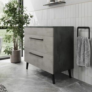 Real concrete look with complementing anthracite These two-tone units feature a raw grey concrete colour across the front and a beautifully matched anthracite colour across the sides, top and bottom. Both are textured to touch and made from a waterproof melamine veneer, which keeps the hugely durable particleboard free from moisture. Silent soft close drawers What’s that you hear? Nothing you say? That is absolutely right! The soft close drawers on the Vitusso units are so smooth and quiet you’d hardly know you’d opened or closed them. High-quality metal runners ensure a seamless movement meaning that the days of clunky, jamming drawers have gone! Flexible installation methods Your choice of installation thanks to a set of stylish black legs included with your purchase. Either fit your new Vitusso unit to the wall or have it freestanding by installing the sleek, taper legs that are included. Manufactured in Italy, the home of style Versace, Prada, Armani. All great designers from