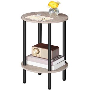 This 2-tier round side table provides a practical solution. The upper tier is perfect for displaying ornaments or daily use items, while the lower tier is ideal for holding books, magazines or other sundries in an orderly and neat manner This small round table is versatile, fitting into small spaces with dimensions of 32 x 32 x 55 cm. It can serve as a coffee table, side table, nightstand or corner addition, adding both elegance and practicality to your space The round side table is made of premium particleboard and durable metal. Its top is smooth and easy to clean, with rounded and polished edges for a delicate touch. The sturdy metal legs come with adjustable feet for extra stability The wooden panel with a greige finish creates a deep and serene aesthetic, while the black metal legs add a modern flair to the overall look. This color combination highlights the subtle taste and exudes a unique personality The small round side table can be easily assembled without the need for any tools. Simply follow the detailed, illustrated instructions step-by-step to enjoy a simple and stylish table that enhances your home decor Brayden Studio