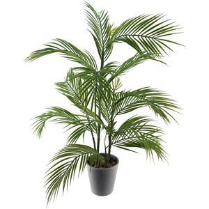 A gorgeous artificial palm in a decorative plastic planter- ready to display staight out of the box. 14 large leaves and four small leaves. The stems are wired and the leaves can be shaped to fit your space. As we have the palm arranged in our photos it measures 90cm x 70cm x 50cm. The decorative grey plastic planter measures 15cm (h) x 15cm (w). The leaves are plastic. The decorative planter is topped with fixed pebbles for an attractive- low maintenance finish.