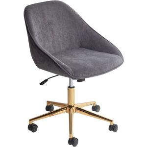 Classic Desk Chair with Hight Adjustment. This classic office chair is a stylish must-have for any workspace. Upholstered in high-quality velvet fabric, it enhances the look of the office. The chair is supported by robust steel legs, and includes a swivel function, allowing for easy movement. The chair's adjustable height feature ensures it can be customised to various needs. Its neutral colour makes it versatile for a range of office decor. Details: Product Type: Office Chair Style: Industrial General Color: Grey, Black, Gold Shade: Dark Grey Material Type: Fabric Main Material: Velvet Additional Material: Steel Legs material: Metal Seat Material: Fabric Material Composition: 100% Polyester 360 Swivel: Yes Adjustable Parts: Seat Height Armrests: Yes Finish: Chromed Leg Caps/ Pads: No Tilting: Yes Dimensions: Armrests Height: 5 cm Depth: 54 cm Seat Height: 39-48 cm Width: 54 cm Height: 77-85 cm Seating Surface: 54x45 cm Weight: 8 kg Weight Capacity: 136 kg Offer Includes: 1 x Office