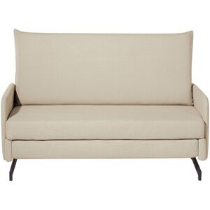 Upholstered Two Seater with Sleeping Function. Liven up your living space with this comfortable, convertible sofa. It is a compact, smart and multi-purpose design that is perfect for small modern spaces, the backrest cushion features removable cushion. The futuristic style is underlined by high-quality polyester upholstery in an earthy beige tone and black, steel legs. The colour scheme suits any home décor and creates a relaxing atmosphere. This 2-seater can be easily turned into an occasional guest bed with an easy-to-use two-fold mechanism. Details: Product Type: 2 Seater Sofa Style: Retro General Color: Beige, Black Material Type: Fabric Main Material: Fabric Additional Material: Stainless Steel Filling Material: Foam Material Composition: 100% Polyester Arm Style: Track Leg Caps/ Pads: Yes Reclining: No Removable Cushion Covers: Yes Seat Construction: Metal Seat Foam Density: 25 kg/m3 Seats Up To: 2 People Sleeper Function: Yes Sofa Bed Open Mechanism: Fold-Out Storage: No