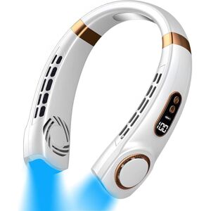 【Strong Wind & Safety】: With air outlets and dual turbine fan blades, the portable hanging neck fan can give you a quick cooling feeling. The bladeless neck fan can be safely used by children and the elderly. For those with long hair, this is your gospel. You don't have to worry about putting your hair down. The neck fan will keep you cool on hot days. 【FIVE-Speed Adjustment】: The neck fan has 5 optional speeds. One button to change FIVE different wind speeds, this neck fan is designed for all ages. 【Portable Compact】: The hands-free neck fan is designed to look like a headset, you can free your hands to enjoy the coolness. The hanging neck fan is lightweight and portable, you can take it anywhere. It is a good companion for gym, climbing, camping and office, etc. in hot weather. 【Noise Reduction】: The portable personal neck fan will produce low noise during operation, which will not disturb you and provide you with a comfortable and quiet experience.