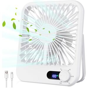 Adjustable Airflow: With 100 speed settings from 0 to 100, and a 180-degree tilt adjustable stand, you can customize the airflow to your preferred level and angle. Ultra Quiet & Powerful: The portable fan rechargeable is equipped with infinitely adjustable speed and silent design. The office fan is quiet and the sound is under 30 dB. 30 decibels is the sound level heard in the quietest environment. There is no problem using the travel fan while sleeping. Compact Portable Size: The travel size fan is , weighing only 0.54lb. The length of the portable fan is 6.8 inch and the width is 5.7 inch. The lighter and thinner design of the small desk fan makes it convenient to fit into any bag, which is really a travel essentials. You can take it with you when going out, or use it in the office, bedroom, kitchen, camping, travel, etc. Just enjoy the anytime, anywhere. Rechargeable Desk Fan: This portable fan rechargeable is equipped with a built-in upgraded battery for extended working hours,