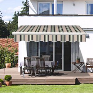 Awning Feature: -Recommend to fix on concrete wall. -Perfect for shading of windows and balcony doors. -With both Torsion bar and Aluminium roller,more durable. -TUV&GS Certification approved. -Stainless Aluminium frame makes the awning more sturdy and uneasy to get rusted. -With two steel cables in the center joint of arms makes it easier to project and retract. -Sidecovers on the roller support makes your awning elegant looking. -Great heat resistance and UV protection. -The slope of the awning approximately 5-35 degrees adjustable from the horizontal -Retractable, can be opened as much or as little as you like up to the maximum projection -Steel crank handle is on the left as you face the awning (same as shown in picture), and can not be moved to another side.) -Comes with complete accessories, ready to be fitted -Easy to clean with sponge and cloth. Specifications -Colour: Multi-Stripe -Torsion bar: 35x35x1.2mm -Aluminium roller: 60mm diameter -Aluminium front bar: 47.2x35.6x1.2mm