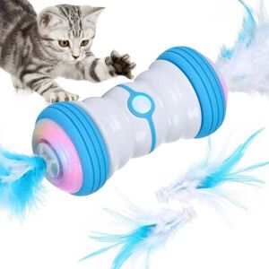 【Two Speed Movement】2021 The newest cat toy with 2 speeds controlled by the on/off button to attract cats with different characters, increase the cat's coolness and make your cat go wild in a hectic frenzy for hours. 【Smart Auto Rotating Toy】This kitten toy is very easy to use and rotates 360 degrees automatically and irregularly, allowing your cat to exercise and have fun. The toy will rotate and move in a different direction when it hits a wall or other surface. Its appetizing feather is always on both sides and flaps its wings no matter where it is and what it does, which greatly increases your cat's interest. 【Safety and Food Grade Silicone】The cat toy is made of high quality ABS material and its wheel is made of food grade silicone. You don't have to worry about the cat toy being scratched or bitten by the cat, which is durable for your cat's play and ensures your cat's health. The built-in colorful LED light is very soft and colorful to attract the cat's attention and will not