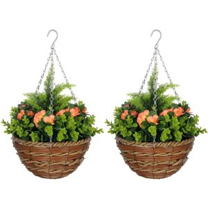 Dress up spaces in naturally colourful way, with no effort required-go for these Outsunny artificial lisianthus flower pots. The fake plants come in a set of two so you can create a matching look easily. Made from top quality plastic for long-term use and a realistic look and feel, each pot features 18 faux flowers and 72 leaves, giving it a beautiful voluptuous look. These plastic plants come with a wicker pot and metal hook and chain, so you have everything you need in the package. OUTSUNNY 2 PCs Artificial Lisianthus Flower Hanging Planter Basket Indoor in Pink