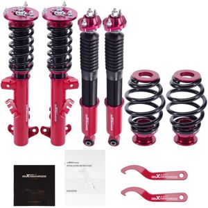MXR-SNA coilovers are designed as an entry level for street use. It features with full length height adjustable and adjustable camber plates (applicable for some vehicles), which offers you a lowered stance, improved performance for your daily use vehicle. Application for BMW E36 Compact 1994-1999 316g, 316i, 318tds, 318ti, 323ti Specifications Top mounts: pillow ball top mounts with camber plate Damping: not available Spring rate Front: 8 kg/mm (448 lbs/in) Spring rate Rear: 5 kg/mm (280 lbs/in) Adjustable height: Yes lowering 1'' to 3'' Shock type: Twin tube Package included: complete coilovers 2 front and 2 rear a pair wrench for height adjustment Feature 1. Lowered height adjustment from 1''-3'' which allow lower center of gravity and also add a more aggressive stance 2. Twin-Tube structure allows sufficient stroke within the shock absorber 3. Separate height adjustment does not affect damper stroke 4. High Tensile performance spring – STRESS TESTED OVER 600,000 times while the