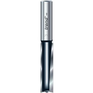 TR17D have a centre tip for drilling abrasive materials and are designed to work with the Trend Worktop jigs Dimensions: Shank: 1/4in Cutting Diameter (D): 12.7mm Cutting Length (C): 50.0mm Trend Trade range two flute router cutters have extra long shanks and are designed to meet the demanding needs of the professional trademen. They have a 2mm micrograin Tungsten Carbide tips for cutting the most abrasive materials to give extra long life. They have a PTFE coat, indicated by distinctive black colouring and produce a clean finish to abrasive timbers such as chipboard, MDF, plywood and certain hardwoods. The dimensions are etched on the extra long 40mm shanks for quick identification and are suitable for mortice and worktops applications.