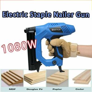 The tacker is compatible with 18 gauge, 5.7mm (1/4��) narrow crown staples (equivalent to type 90, No.90 Narrow Crown) and 18 gauge 2mm (1/16��) crown brad nails (equivalent to Tacwise 18G, Arrow BN18, 18G & Rapid no. 8 brad nails) of the following lengths: Staples �C 15mm (9/16��), 16mm (5/8��), 18mm (5/7��), 19mm (3/4��), 21mm (13/16��), 22mm (7/8��), 25mm (1��) Nails �C 15mm (9/16��), 16mm (5/8��), 21mm (13/6��), 25mm (1��), 30mm (1-3/16��), 32mm (1-1/4��) Staple Specification: Staple Loading Capacity: 100pcs Wire Spec: W1.25x T1.0mm Crown Width: 5.7mm Staple Length: 15 - 25mm About Product: Voltage: 220 �C 240V ~50Hz Rated Current: 9A Rated Firing Speed: ��20pcs/min Nail Specification: Wire Spec: W1.25x T1.0mm Brad Crown Width: 2.0mm Nail Length: 15 - 32mm Nail Loading Capacity: 100pcs Package Included: - 1 Electric Nail Gun - 100pcs nails - 25mm - 300pcs staples - 19mm - 1PC Hexagon key