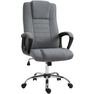 Adjustable height: 45-56cm, position this desk chair at a height you want. Great for many different people and table levels. Ergonomic: Home office chair features a large seat, high back and fixed armrests, supporting the body correctly as you sit and work. Padded headrest for extra support. Comfortable: Executive office chair is padded all over, with linen-look upholstery which is smooth on the skin. A comfy chair for work and leisure use. Free moving: 360° swivel seat works with the five wheels, so the computer chair moves around freely and easily with your body movements. Dimensions: 110-120H x 66W x 75Dcm. Maximum Weight Capacity 135kg. Assembly required.