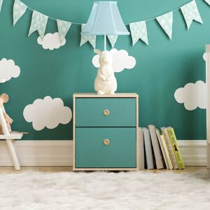 The Kayshia 2 drawer bedside cabinet presents a versatile and functional addition to your child's bedroom, crafted from a combination of durable Particleboard and MDF whilst also featuring a Paper veneer and melamine finish. Available in colour options of White and Oak, Blue and Oak and also Pink and Oak, this cabinet allows for personalization to perfectly complement your child's bedroom decor. With two pull out drawers, it offers ample storage capacity, ideal for organizing books, toys, bedtime essentials and more, fostering a neat and tidy space for your child. The cabinet's top surface serves as a multifunctional space, adaptable for additional storage or as a convenient spot to place essentials such as an alarm clock, lamp, phone and much more. 17 Stories Colour: Blue/Oak