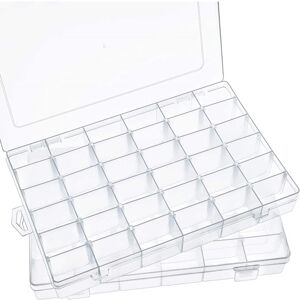 Removable Dividers and Customize Size: This craft storage container box has 36 divided storage compartments. The grid inside can be moved and inserted easily, so you can adjust the dividers to create your own size compartments. Wide Applications: Perfect for organizing and storing small items: rock collection, small accessories, accessories diamond, nail art supplies, washi tape, sewing carft supplies, earrings, rings, necklace, threads, beads, seed, tea bag, key, screws, fishing hook, fish lure bait; letter board letters, pills, small , electronic components, art DIY crafts, make-up brushes, pencils, drill pen, nuts and bolts, floss, etc. Keeps Craft Items Organized And Secure: This plastic embroidery floss organizer box lid is easy to open, the two latches stay securely closed when snapped shut. The individual box compartments have no gaps when the lid is closed, so small items 't mix or fall out. Store and Travel Friendly: You could put the embroidery box away in your drawer or