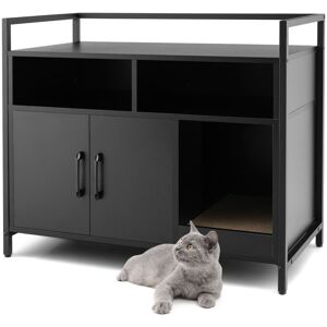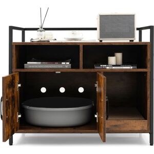 The litter box enclosure features ventilation holes and double doors that provide ventilation and privacy, making it the ideal place to hide your cat's litter box. Besides, there is an entry between the cabinet and the shelf for easy access to the cat scratch pad placement compartment. Meanwhile, its spacious table top and 2 compartments provide ample space for storing some of your daily necessities. Therefore, the litter box enclosure is a perfect laundry storage cabinet and living room side table.The net weight of the Coffee Cat Cabinet is updated to 22kg. Ebern Designs Colour: Brown