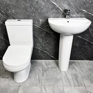 Modern Bathroom Suite Molly Round Basin with Life D Shaped Toilet Ensuite Hydros Molly basin & pedestal 1 tap hole basin and pedestal Round modern style basin with slim rim Full pedestal High gloss glaze Basin & ped sizes approx: Width: 540mm Depth: 420mm Height: 840mm Roca Life Close Coupled Toilet Modern D Shaped Inc Soft Close Seat Life close coupled pan and cistern With soft close seat Dual flush Includes cistern fittings Modern D shaped design Made by one of the World’s leading bathroom manufacturers Dual flush cistern 4,5/3L Made by Roca but the ceramic does NOT have the Roca brand stamped on it Sizes approx: Width: 365mm Depth: 670mm Height: 750mm Pan height only: 405mm Sally Basin Mono Tap with Click Clack Waste - Add at Extra Cost Sally curved basin mono tap Chrome finish Brass body Modern curved design Single lever controls both temperature and flow 35mm ceramic disc cartridge Flexi tail pipe Tap option comes with a chrome finish click clack basin waste