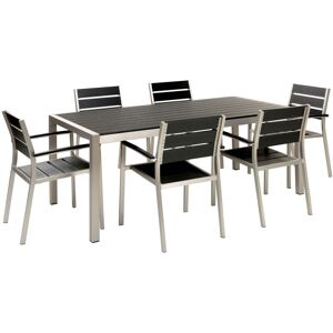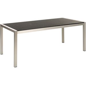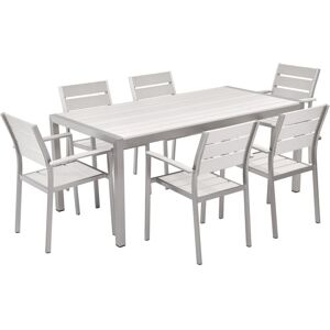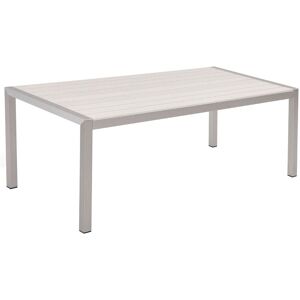Outdoor Table for 6 People. Prepare your garden for summer with this outdoor dining table. Silver frame made out of durable aluminium is easy to take care of, while the plastic wood top complements the whole piece. The table is also weather resistant which ensures the long-lasting use. Due to its size, it offers plenty of space for 6 people, allowing you to throw parties or meetings with friends at ease. Details: Product Type: Garden Table Style: Industrial General Color: White, Silver Material Type: Synthetic Material Main Material: Plastic Wood Additional Material: Aluminium Legs material: Metal Top Material: Synthetic Material Shape: Rectangular Finish: Anodized Seats Up To: 6 People Dimensions: Width: 90 cm Length: 180 cm Height: 76 cm Weight: 28.5 kg Weight Capacity: 150 kg Offer Includes: 1 x Table Key Features: Modern Patio and Garden Style, Timeless Design, Sturdy Frame Construction, Both for Indoor and Outdoor Use, Easy Care and Durable Materials Assembly Information: Legs to