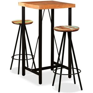 Chat with your friends or have a drink while relaxing on this bar set! This bar table features an MDF tabletop and strong metal legs with a wooden look, making it easy to clean. These bar stools, constructed from solid teak wood, have been seasoned, kiln-dried and fine sanded to give a smooth appearance. Teak wood is known for its exceptional strength, making it the perfect choice for you to have a long-lasting piece of furniture. Additionally, the legs are made of durable iron, which ensures their sturdiness. Bar table : Colour: White Material: Metal, MDF Dimensions: 120 x 60 x 105 cm (L x W x H) Tabletop thickness: 20 mm Legs with heat transfer print in wood look Bar stools : Material: Fine sanded teak hardwood with a teak oil finish, iron with powder-coated finish Dimensions: 40 x 40 x 79 cm (W x D x H) Assembly required: Yes Delivery contains: 1 x Bar table 2 x Bar stool