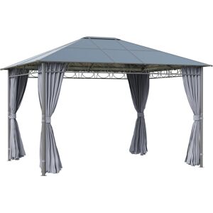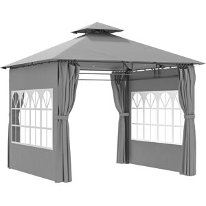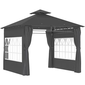 Make a statement in your garden and outdoors with this deluxe steel frame gazebo from Outsunny. Elegant metal rails are placed on each corner, with attached curtains and mosquito nets to create privacy and keeps bugs out, with a two-tier top on the roof which allows air to flow in and out efficiently. It is finished with built-in rain grommets so liquids fall straight to the ground. The hot tub gazebo with sides comes complete with eight ground stakes to keep secure to the ground.Features:Powder coated steel frame, ensures a tough and sturdy structure which keeps in place all day longLarge and deluxe design for the perfect outdoor shelter for BBQs, gazebos, Summer parties, and other occasions and eventsCoated polyester canopy for protection inside the canopy, shielding from light water, UV and fadingDouble tier roof ensures air efficiently flows in and out to keep the inside coolElegant metal rails on each corner, with curtains attached for privacy. Hook and loop fastenings to hold back to frameInner netting on curtains to protect against bugs and pestsBuilt-in grommets of the roof so water and liquids roll down to the floorEight ground stakes included, assembly required