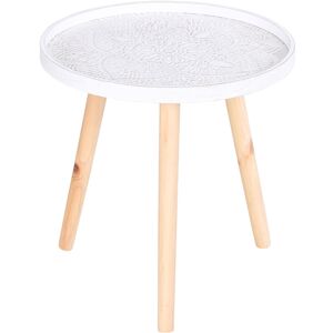 Bring beauty into your everyday surroundings with this side table from HOMCOM. Using MDF for enduring strength and resilience against everyday wear, the tabletop is crafted into a shallow saucer design, with raised edges to prevent anything from falling off and breaking. In a fresh white tone which brightens up your home instantly, the saucer is covered in flower etching all over for an elegant look, with water-resistant paint all over for extra protection. It is finished with three solid wooden legs, providing stability which is able to hold up to 20kg steadily. A beautiful companion for the bedroom, living room, hallway and office. Specifications: ● Colour: White, Natural ● Material: Pine Wood, MDF ● Overall Dimension: Φ40 x 40.5H cm ● Weight Capacity: 20kg ● Item Label: 833-730 Features: ● Raised edge prevents books, flowers, magazines etc. from falling ● Exquisite engraved patterns on the top surface adds modern aesthetic beauty ● Three solid wood legs, keeps table balanced and