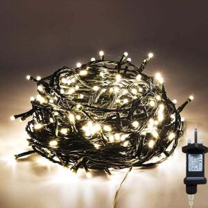 Specifications for 100 LED Plug-in Lights: 100 super bright LED lights with 10 m light length and 10 m power cord. The total length of the string lights is 20 m. Perfect decorative for outdoor and indoor use, such as garden, gazebo, house, bedroom, stairs, Christmas tree, or any other holiday decoration. 8 lighting modes: including combination, flashing fireflies, waves, fading, chasing/flashing, slow fade, twinkle/flashing, and steady on, etc., which can create different atmospheres in your life. IP44 waterproof string lights: withstands low-pressure water jets, perfect for outdoor use, such as patio, garden, canopy, swimming pool, and landscape lighting. The plug is IP44 rated. Safe to use: Low voltage, cool to the touch, and does not heat up. Safe for children and pets. It creates a romantic atmosphere for your family and is also a great gift for your friends.