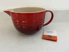 The Le Creuset Stoneware Mixing Jug in Meringue is perfect for when you want to whip up a batch of pancakes or making a cake. With a generous 2 litre capacity, large handle to keep things steady when mixing and a neat spout for mess-free pouring, the exterior features the distinctive three ring design synonymous with Le Creuset cast iron collection. Le Creuset stoneware is made from specialist clays and fired at the highest temperatures, making it strong and durable with exceptional thermal resistance. Thanks to Le Creuset's enamelling expertise, all stoneware products are easy to clean and are scratch resistant as well as being oven, grill, microwave and dishwasher safe. This Le Creuset Meringue Stoneware Mixing Jug is supplied with a 10 year Le Creuset guarantee.