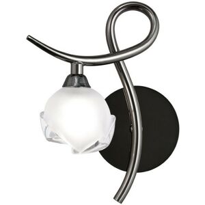 Specification Inspired Mantra - Fragma - Wall Lamp Right Switched 1 Light G9, Black Chrome Finish: Black Chrome IP Rating: IP20 Height (cm): 24 Width (cm): 19 Projection (cm): 14 No. of Lights: 1 Lamp Type: G9 Switched: Yes - Rocker Switch Dimmable: Yes - Dimmable Bulbs Required Wattage (max): 33W Weight (kg): 0.7 Bulb Included: No Description This collection combines exquisite frames, bows and impossible loops, with an original-cut sphere glass shade incorporating acid-etched reserves. This attractive and interesting range demonstrates how an artistic creation can become a reality. The fluid metal work comes to a perfect point as though it is the end of a signature. The range is available in polished chrome and black chrome and also includes a left and right handed wall lamp for that extra versatility.