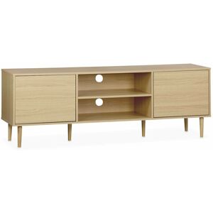 Sleek, elegant, and functional, the furniture in our Mika range will seamlessly fit into your interior. With its woody material, bedside tables, dressers, TV stands, consoles, coffee tables, buffets, and desks will harmonize perfectly with every room in your house. The Mika collection will easily find its place in a contemporary-style decoration. A contemporary TV stand with clean lines The Mika TV stand will bring a contemporary and sleek touch to your living room. Trendy and authentic, its wooden structure adds to its charm. Its conical pine wood legs make it a unique and refined piece that will elegantly adorn your space. Functional and secure Not only refined, but this TV stand is also functional. With its long surface, it allows you to place your screen and other decorative elements. Featuring 2 niches and 2 push drawers, this TV stand provides ample space to securely store your living room equipment. The shelf can be placed at 3 different heights as needed. The back has two